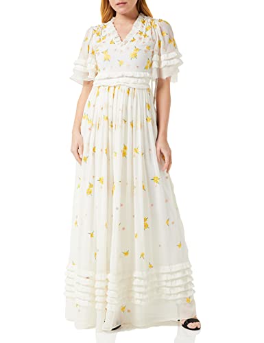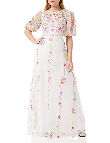 Frock and Frill Dam blommig broderad klänning speciellt tillfälle, vit, 10, Vitt, 36 SE