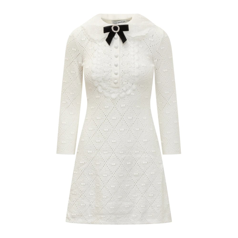 Self Portrait, Klänningar , Dam, L, Vit Spets Miniklänning med Broderad Krage