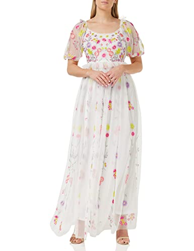 Frock and Frill blommig broderad klänning för kvinnor speciellt tillfälle, Benvit, 38 SE