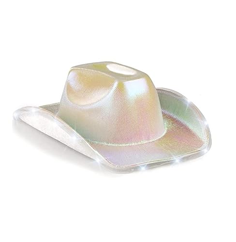 LEEMASING unisex cowboyhatt lyser upp blinkande LED-brätte rolig upplyst hatt för bröllop bal födelsedagsfest halloween (vit)