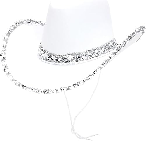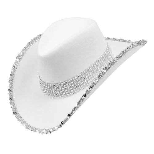 Toyland® 38 cm (15") vit cowboyhatt med silverpaljettkant - festivaler, konserter, maskeraddräkter och möhippor - 3 färger tillgängliga