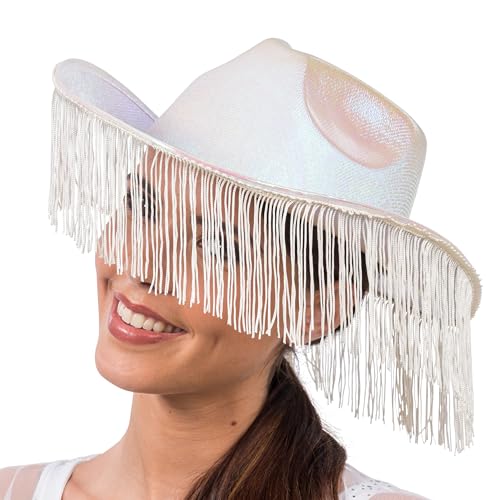 Chaks Holografisk cowboyhatt med fransar, västerländsk kostym, tillbehör, karneval, festival och JGA
