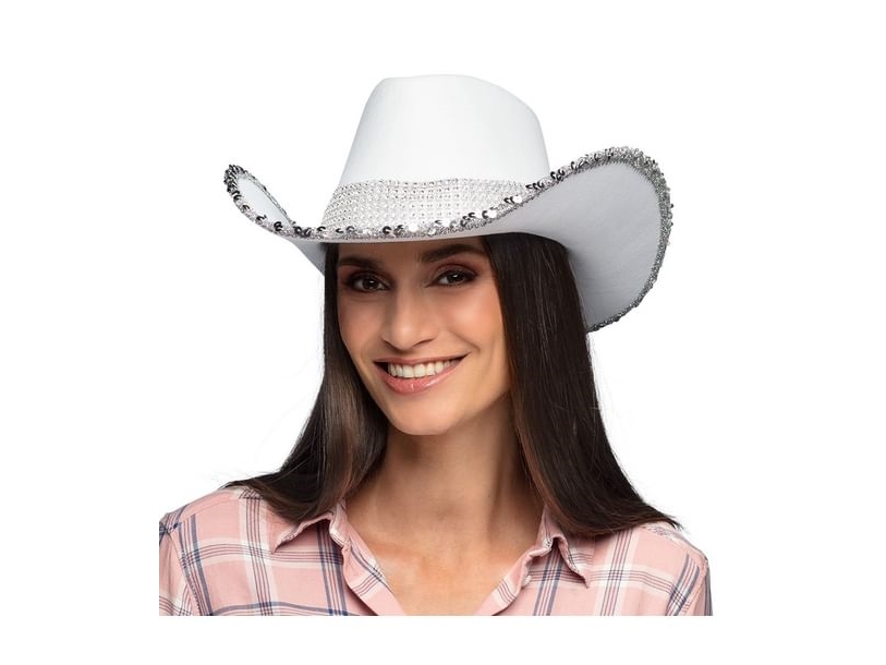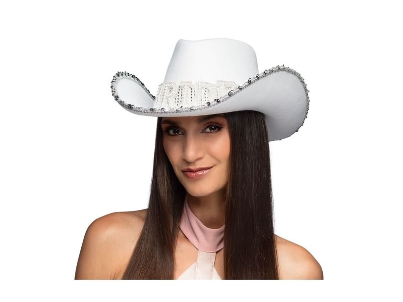 Boland – Cowboyhatt pärla, hatt för karnevaldräkter, karneval, temafest och JGA, vit