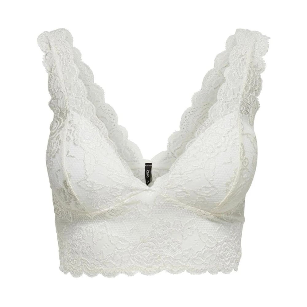 Only, Toppar , Dam, M, Läder, Vit Spets Crop Top V-ringning