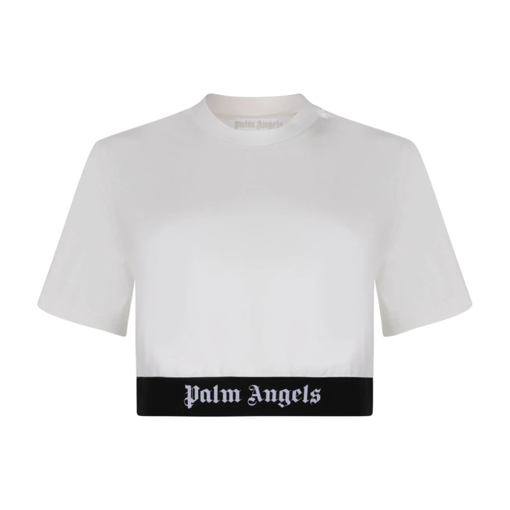 Palm Angels, Toppar , Dam, M, Bomull, Vit Logotyp Crop Top Jersey Textur