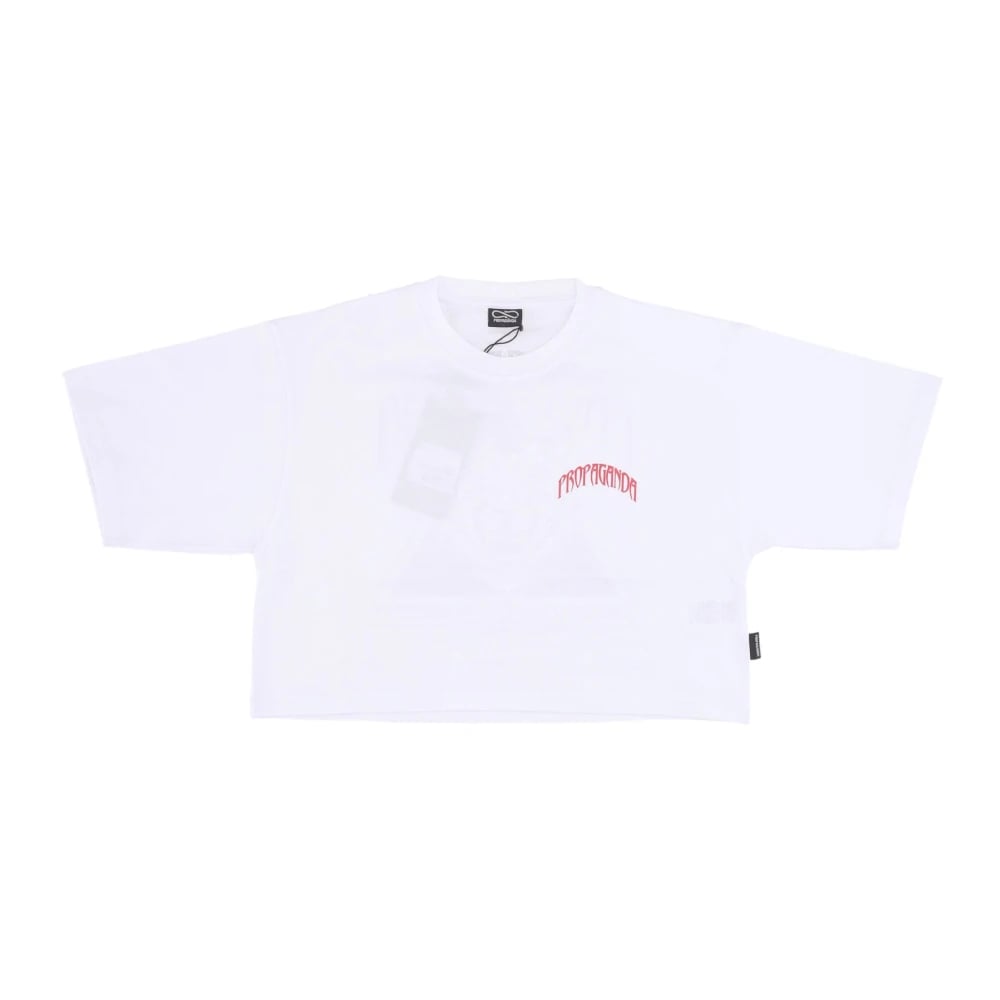 Propaganda, Toppar , Dam, L, Bomull, Vit Triangel Crop Top Tee