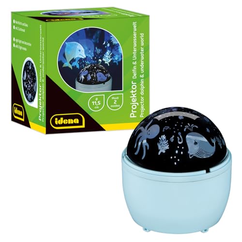 Idena 50144 - Delfin LED-projektor och undervattensvärlden, ljus i vitt och blått, LED-stjärnhimmel med 2 lägen, batteridriven, ca 11,5 x 13 cm