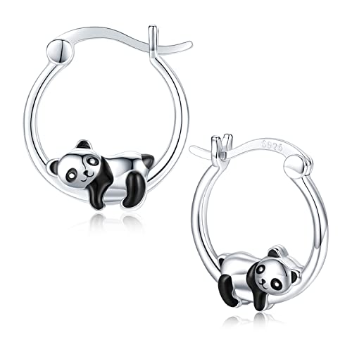Djur kreolsk flicka S925 silver panda kreoler örhänge koala tvättbjörn snigel kanin kolibri delfin djur manschett kreoler för kvinnor flickor dotter barn, Silver