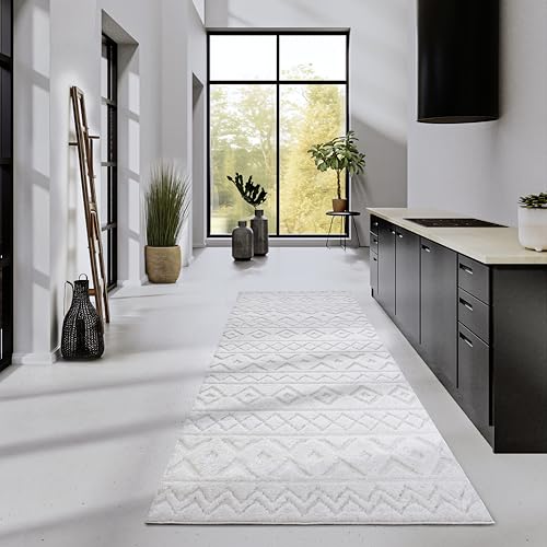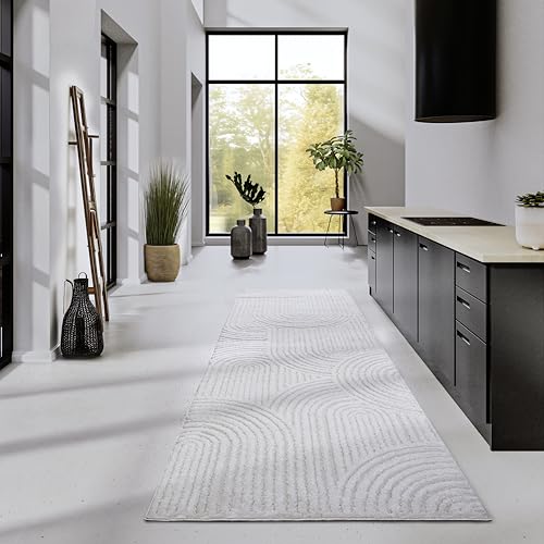 Surya Essentials lurvig matta – moderna löparmattor, vardagsrum, matsal, mjuka lurviga mattor för sovrum – abstrakt fluffig matta, lättskött plyschlugg – stora mattlöpare 80 x 220 cm, vit matta