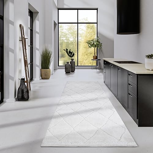Löpare, fluffig matta BERBER shaggy, ransar, Marockansk stil, för kök, hall, korridor, CROSS vit 80x300 cm