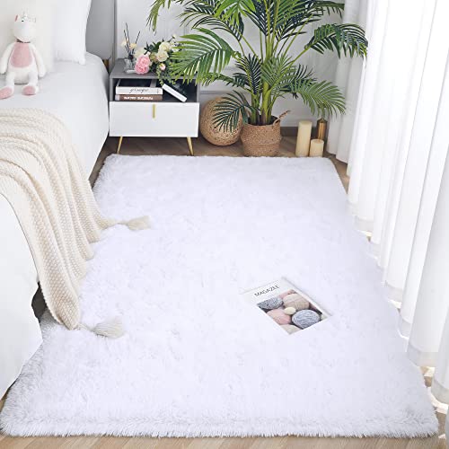ROHATIM matta med lång lugg, vardagsrum, supermjuk lurvig matta, fluffig, mjuk områdesmatta, sovrumsmattor, supermjuk fluffig barnmatta (ren vit, 120 x 160 cm)