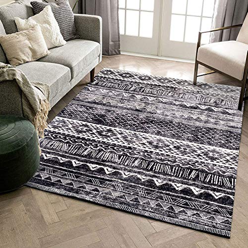 Sovrumsmatta i modern stil, modern, konstnärlig matta, unik traditionell vardagsrumsmatta, mjuk, kort lugg, halkfri, fluffig matta för vardagsrum & sovrum (svart, vit, 200 x 250 cm)
