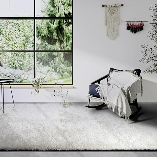 ROHATIM matta med lång lugg, vardagsrum, supermjuk lurvig matta, fluffig, mjuk områdesmatta, sovrumsmattor, supermjuk fluffig barnmatta (ren vit, 160 x 230 cm)