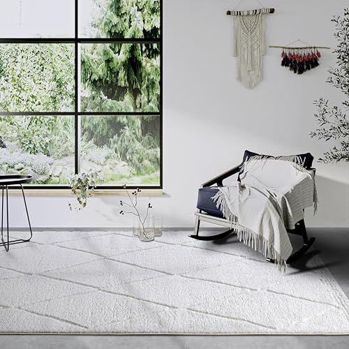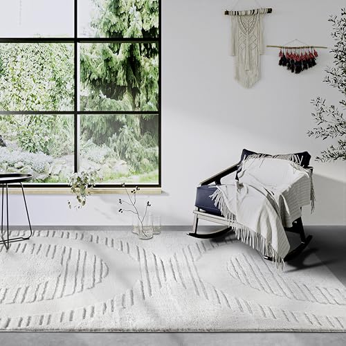 Surya Home lurvig matta – moderna mattor vardagsrum, matsal, mjuka lurviga mattor för sovrum – abstrakt fluffig matta, lättskött plyschlugg – stor matta 120 x 170 cm, vit matta