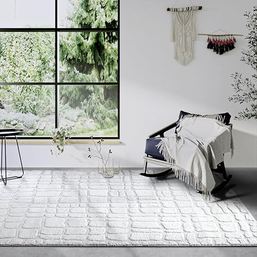 Områdesmattor för Antisladd I Sovrum 110 x 240 cm Modern, Fluffig, Halkfri Undersida, Lättskött Moderna Inomhusmattor Halkfri Matta för Vardagsrum for Living Room Bedroom, Vit