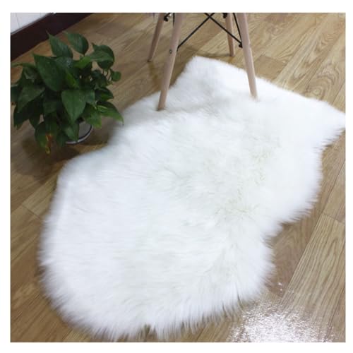 Hrlace lammskinn fårskinn matta fuskpäls matta lammskinnsimitation matta långhårig mjuk fluffig stoldyna imitation ull sängmatta soffa matta för stol soffa sovrum vit 45 x 65 cm