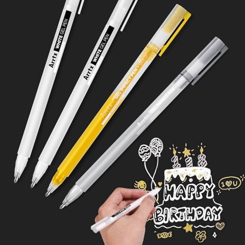 Arrtx vit-silver-guld-gelpenna, 1 mm gel-roll-gelbläckpenna, gelpenna för svart papper, rita, skissa, skriva, målarböcker för vuxna, illustration (2 vit, 1 silver, 1 guld)