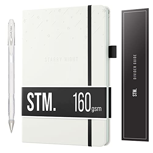 Svart papper Bullet Prickig Journal Anteckningsbok | B5 Starry Night av Scribbles That Matter | Gratis vit gelpenna | Upplev Bullet journalföring på tjockt 160 gsm rutnät utan blödning | För kvinnor och män