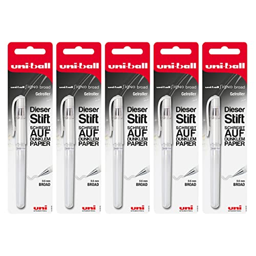 uni-ball 205038 – Gelrulle Signo UM-153, gelpenna set, 5 stycken, vit, 0,6 mm spets