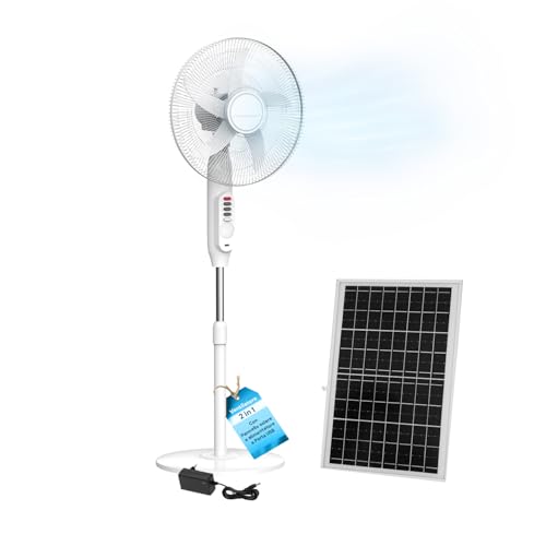 Wintem Golvfläkt med solpanel, batteri 6 000 mAh, automatisk svängning, 3 hastigheter, inomhus- och utomhusbruk, USB-uppladdningsbar, Ø 40 cm, tyst motor