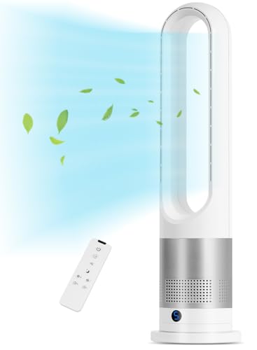 ZJchao Tornfläkt, svängande golvfläkt, tyst bladlös kylfläkt, bladlös tornfläkt, 90 graders svängande tyst bärbar USB-skrivbordsfläkt med ljus, svängande fläkt, för sovrum,