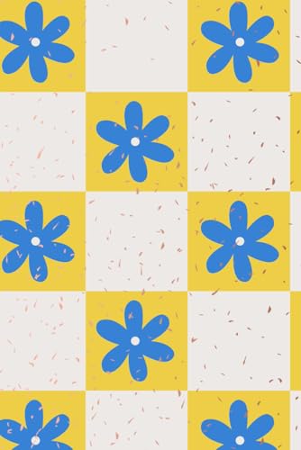White and Yellow Checked With Blue Flowers and Sprinkles 50 Watermark Blank Page Notebook/Journal