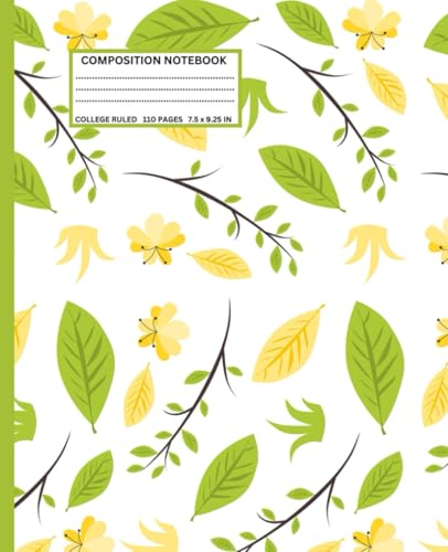 Composition Notebook College Ruled – Green Leaf & Yellow Flower Journal 7.5 x 9.25 for Students & Writers: Botanical Aesthetic Notebook – 110 Wide ... Pages, White Paper for School & Daily Notes