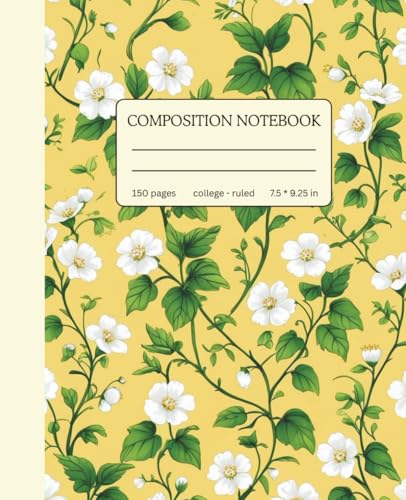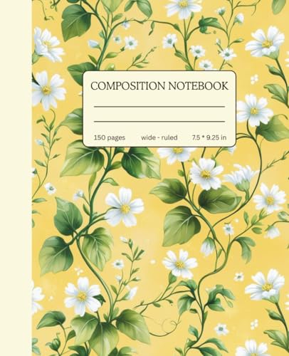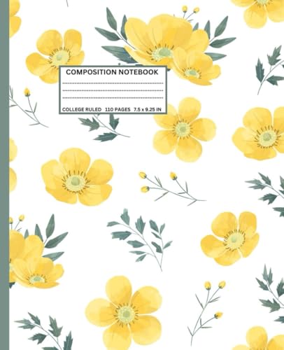 Composition Notebook College Ruled – Yellow Floral Notebook 7.5 x 9.25 for Girls, Students & Women: Pretty Daisy-Inspired Flower Journal – 110 Lined ... White Paper for School & Everyday Writing