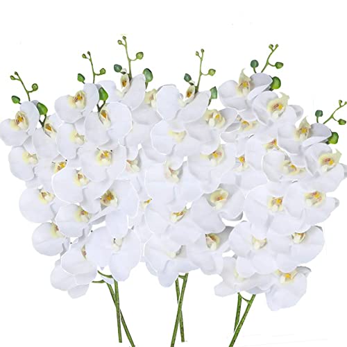 68,5 cm konstgjorda Phalaenopsis blommor 6 st vita kanske svaga gula konstgjorda orkidéblommor stjälk växter för heminredning