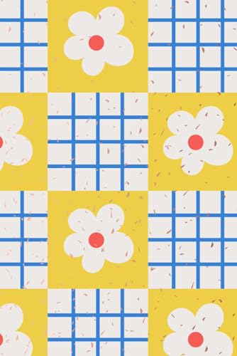Blue and Yellow Check White Flowers 50 Watermark Blank Page Notebook/Journal