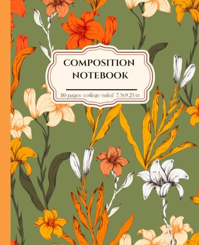 Vintage Botanical Composition Notebook | Orange, Yellow and White Flowers Illustration | Elegant Journal Aesthetic for College, School, Office & Work: 110 pages | college-ruled | 7.5 x 9.25 inch