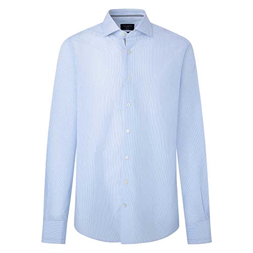 Hackett London Micro Fine Stripe herrskjorta, Vit/himmel, 36 SE