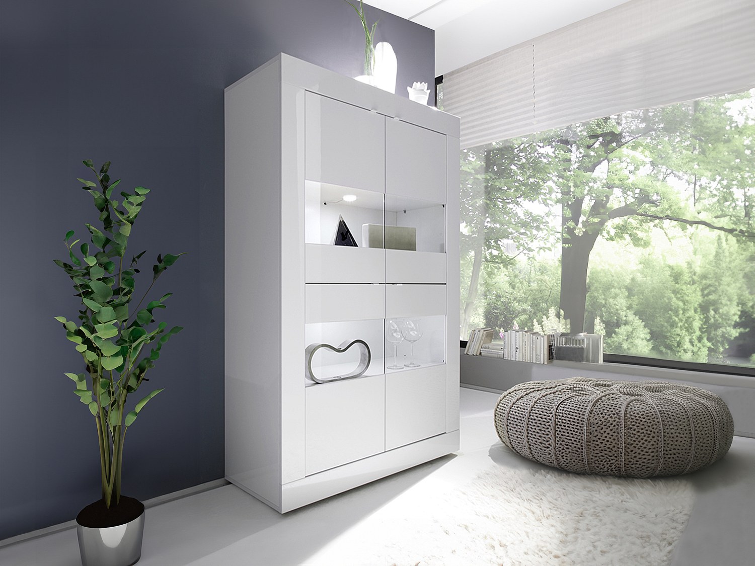 Vitrinskåp med 4 dörrar vit högglanslack med LED-belysning COMETE