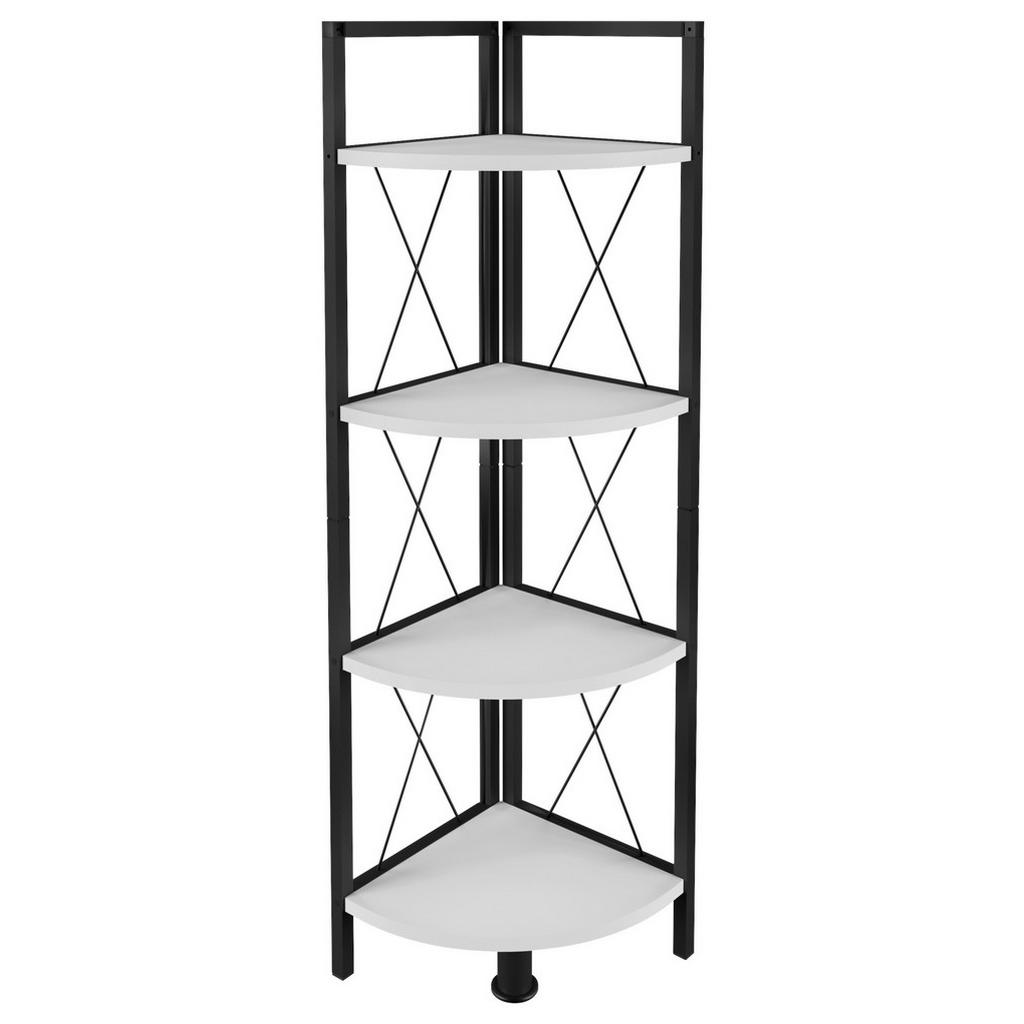 4-vånings steghylla hörnhylla av trä med tvärstång 51 x 46 x 143 cm vit