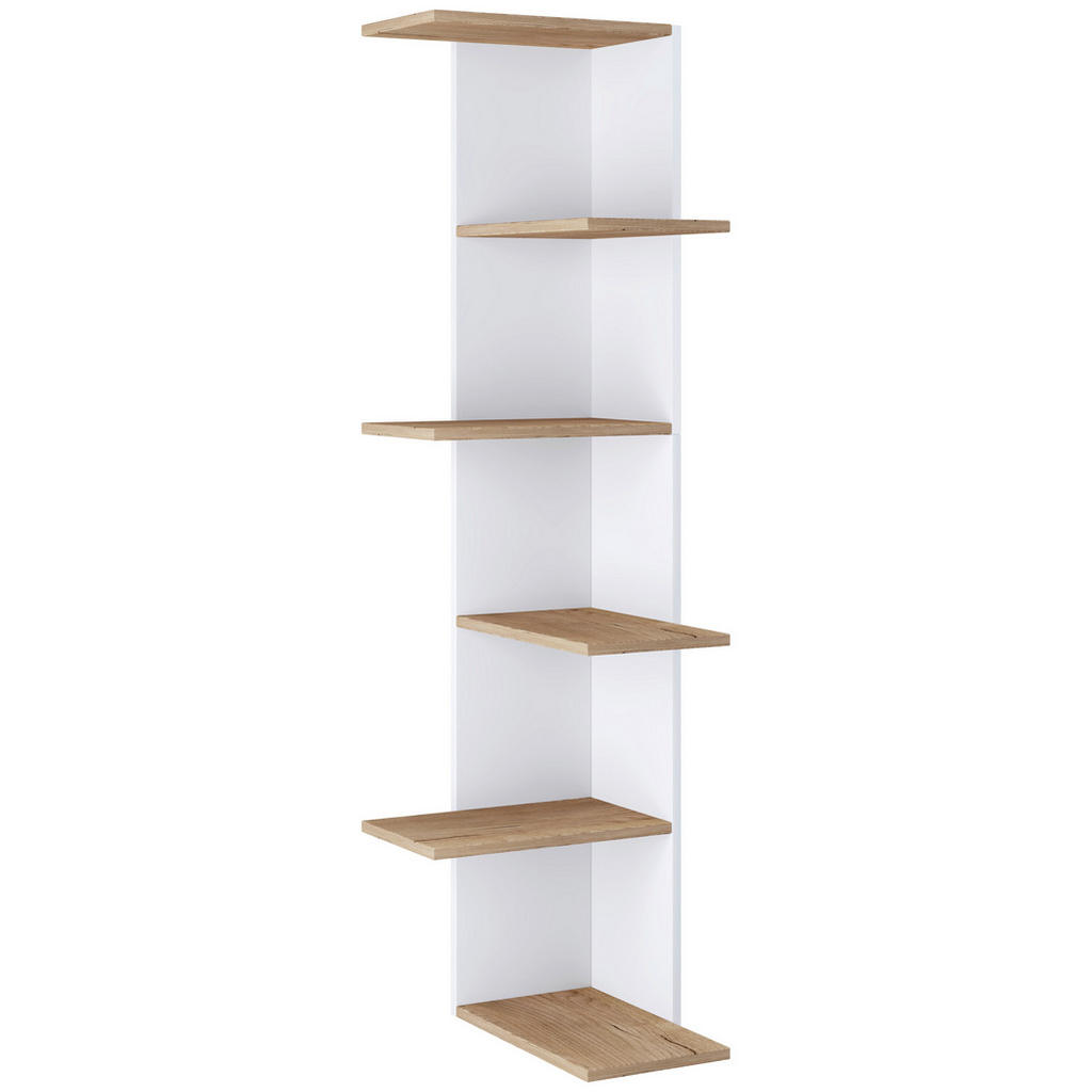 Relaxdays Hörnhylla, 5 hyllor, HBT 122 x 19,5 x 19,5 cm, hängande bokhylla, sicksackdesign, vägghylla, MDF, vit