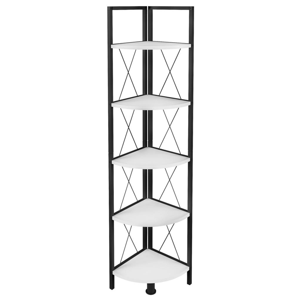 Tribesigns Hörnbokhylla med 5 hyllor, stor modern hörnbokhylla, 5 nivåer hög hörnhylla förvaring visningsställ med metallram för vardagsrum och hemmakontor (vit)