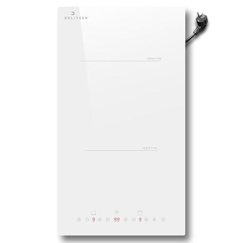Induktionshäll 2 plattor vit med kontakt, Deliteer hällar bil, 30 cm inbyggd induktionshäll
