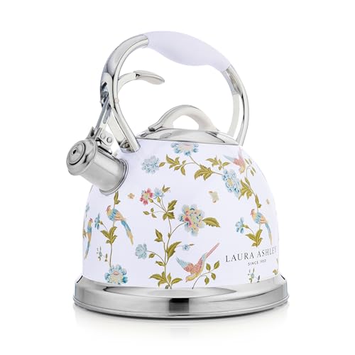Laura Ashley Elveden Vit Induktionsvattenkokare på 2,5 Liter från VQ - Snabbkokande Visslande Vattenkokare för Gasspis, Induktionshäll eller Andra Spisar med Tryckknappsmekanism