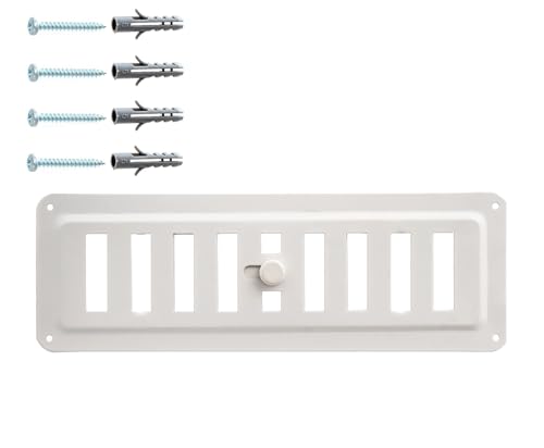 DEMLOU Justerbart ventilgaller 23x7,5 cm – Metall pulverlackerad vit RAL9016 – Öppet–stängt luftventil för vägg tak spis kamin.