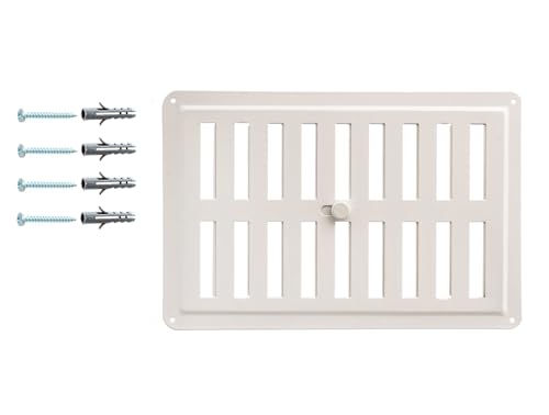 DEMLOU Justerbart ventilgaller 23x15 cm – Metall pulverlackerad vit RAL9016 – Öppet–stängt luftventil för vägg tak spis kamin.