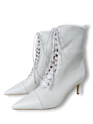 Frankie Hsu handgjord ankel kattunge mitt lågklackad stövel, vit snörning stor storlek US5-14 skor för kvinnor män, Vitt, 45.5 EU