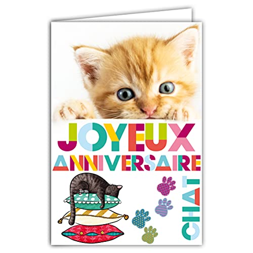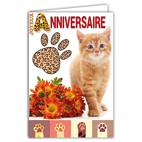 Afie 67-1234 grattis på födelsedagen kattunge katttassar orange fauve tickade blommor med vitt kuvert format 12 x 17,5 cm