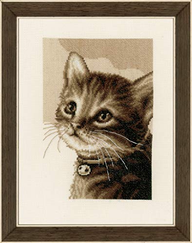 Vervaco Räknad punktsats fräck kattunge, vit, ca. 30 x 31 cm