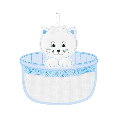 FILET – Kattunge födelseband – Aida canvaskorg för broderi, perfekt för att hänga för att tillkännage en pojkes födelse, 100% tillverkad i Italien, vit och blå