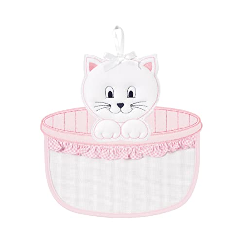 FILET – Kattunge födelseband – Aida canvaskorg för broderi, perfekt för att hänga för att tillkännage en flickas födelse, 100% tillverkad i Italien, rosa och vit