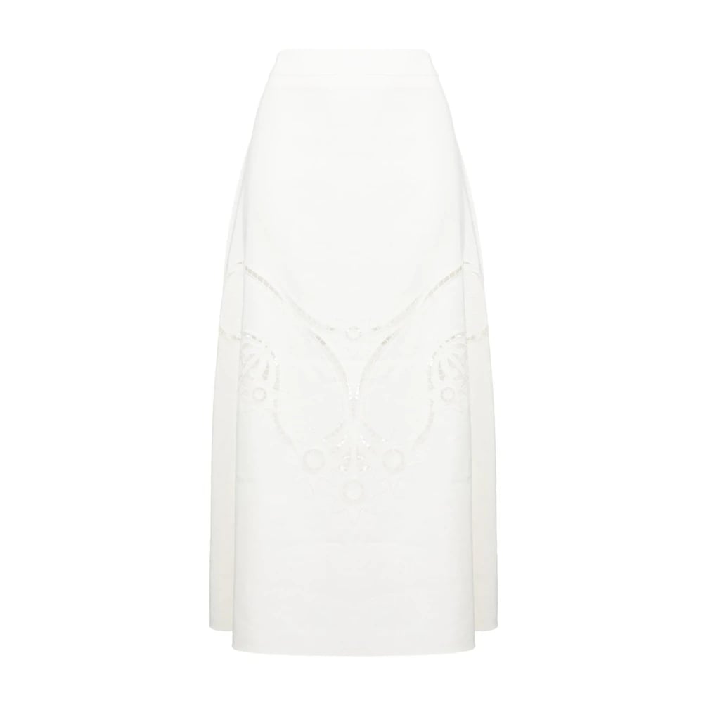Dries Van Noten, Kjolar , Dam, M, Elegant Vit Broderad Kjol