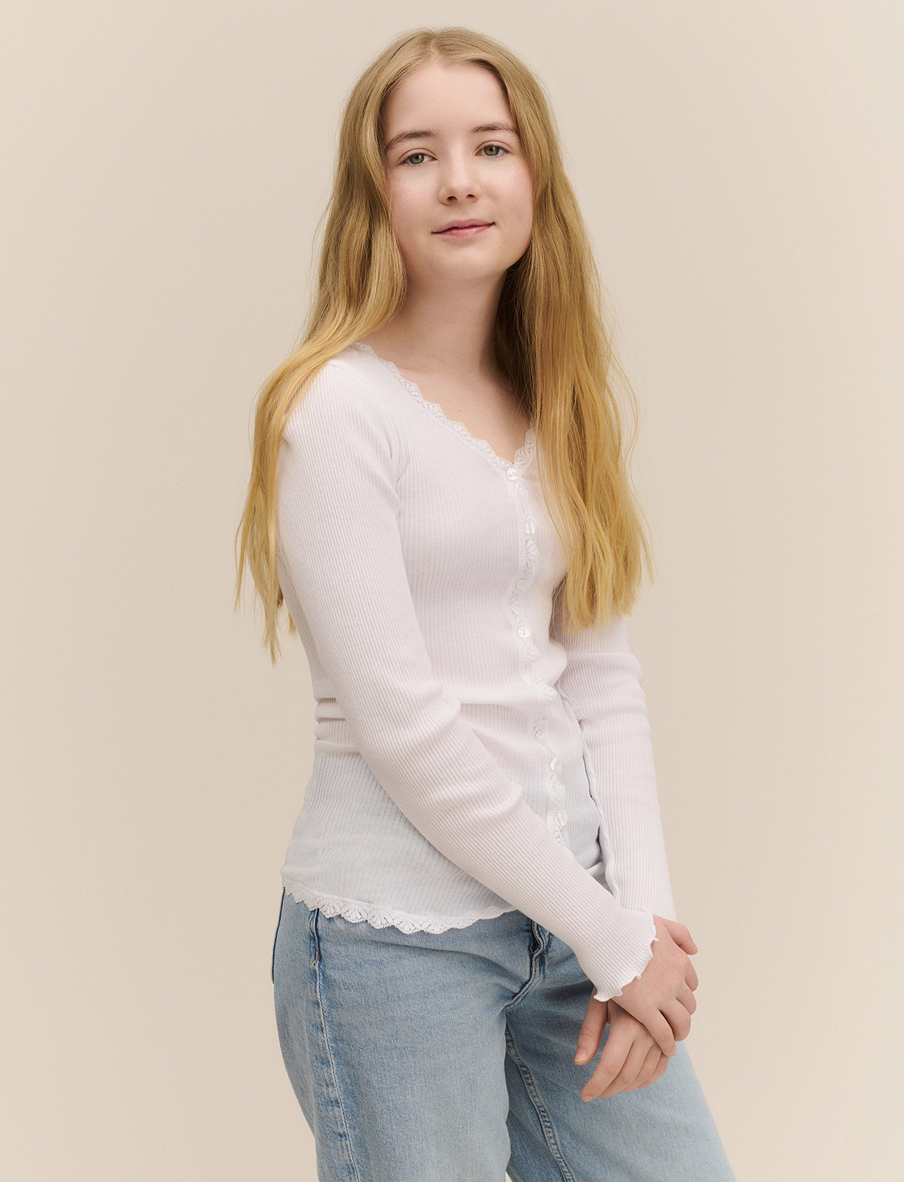 Rosemunde Kids Rkbalta Modal Ls Lace Cardigan - White - 152