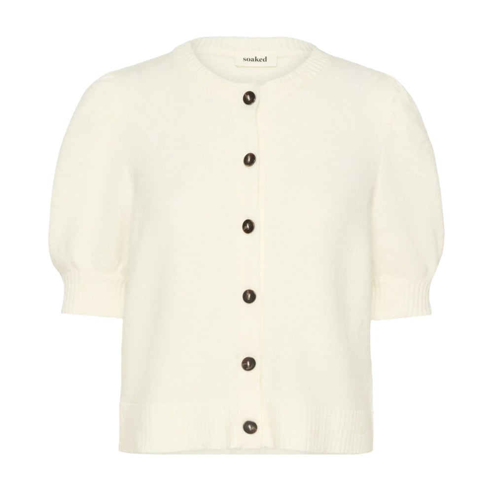 Gestuz, Stickade Tröjor , Dam, XS, Mjuk Ivory Kort Kofta Alphagz Stil