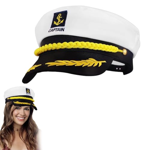 Sjömansmössa, justerbar kaptenhatt, kapten sjöman hatt, herr dam sjöman kostym tillbehör, för strandfest och rollspel (vit)