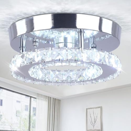 Lhome Modern LED-taklampa fixtur mini kristallkrona spolning LED kristall taklampa finish krom kristall hänge för kök hall sovrum matsal vardagsrum (vit rund)